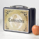 This is a standard metal lunchbox that appears to work just fine. We designed this box ourselves with an uploaded photo and custom text on the front and back. It looks absolutely beautiful except the front of the lunchbox is not centered like it shows in the photo. The print borders don't align with the inset flat part of the box where the preview photo online showed it perfectly centered in there. The back looks nice and centered though.