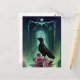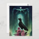 Introducing the whimsical gothic Raven illustration postcard, featuring a cute, whimsical gothic fantasy style illustration of a raven with a bouquet of pink roses. This postcard would be the perfect thing to send to a spooky friend in your life! Use the menu on the right to edit this design or add an envelope.