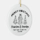 Featuring a whimsical festive design it’s a timeless memento that captures one of life’s most precious moments. Each elegant round ceramic ornament includes a gold hanging string and is available in six festive colors — Black, Green, Blue, Red, Pink, and Sage Green.