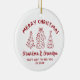 Featuring a whimsical festive design it’s a timeless memento that captures one of life’s most precious moments. Each elegant round ceramic ornament includes a gold hanging string and is available in six festive colors — Black, Green, Blue, Red, Pink, and Sage Green.