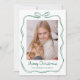 Whimsical Green Bow Meowy Christmas Photo Holiday Card