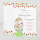 Adorable kid's birthday invitations featuring a cute pretty princess with green dress and crown, and colourful floral frame. ideal for your little girls' birthday party!