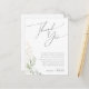 Step into a world of enchantment with our whimsical greenery reception table thank you card, perfect for your botanical spring boho wedding. Adorned with sage green eucalyptus and gold accents, this thank you card exudes elegance and modern whimsy. Imagine strolling through a magical summer garden, surrounded by the soothing sounds of nature. The design effortlessly captures the rustic charm of autumn with its light green hues, evoking the beauty of the changing season. With a touch of minimalist sophistication and classic bohemian flair, the shimmering faux gold foil details add a touch of glamour and romance. Complete with a graceful fairytale feel, this thank you card exudes class and showcases the natural splendour of fall. Please feel free to contact us with any questions about the design, and let us help you make the wedding of your dreams.
