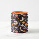 A magical Halloween night unfolds in this whimsical pattern, filled with glowing crescent moons, playful bats, and radiant stars set against a deep black sky. Bright orange pumpkins, swirling clouds in shades of purple and grey, and delicate spiderwebs weave together a lively yet enchanting scene. The design blends spooky charm with a dreamy storybook feel, perfect for evoking festive autumn nights and imaginative seasonal whimsy. AI generated artwork.