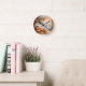 Whimsical Halloween scene with pumpkin and ghosts Round Clock