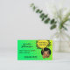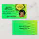 Cute mummy calling card done in a bright green and gradient yellow dots. Fun graphics of a hamster sticking it's head out from a black hole has a yellow cartoon yell out, with custom text on it. Black text on the front and the back, is ready to personalise to suit your needs. Great for arranging play dates with other moms.