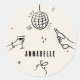 Cream and black whimsical hand drawn 30th birthday drinks cocktail disco ball bow coquette party favour sticker design.