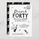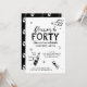 Cheers to 40 years. Black and white whimsical hand drawn 40th birthday birthday drinks cocktail wine coquette party invite.