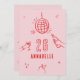 Pink and red whimsical hand drawn editable age birthday drinks cocktail disco ball bow coquette party invite.