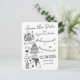Whimsical Hand Drawn Black Illustration Wedding Save the Date