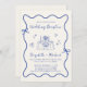 Whimsical Hand Drawn Blue Cream Wedding Reception Invitation