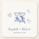 Whimsical Hand Drawn Blue Cream Wedding Square Paper Coaster