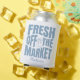 Whimsical Hand Drawn Blue Fresh Off The Market Can Cooler