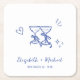 Whimsical Hand Drawn Blue Wine Glasses Wedding Square Paper Coaster