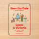 The Whimsical Hand Drawn Bold Red Playful Save the Date Invitation combines hand-drawn illustrations with bold retro typography on an acrylic background.