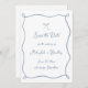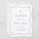 Whimsical Hand Drawn Coquette Bow Dusty Blue Wedding Save the Date with a wavy ribbon frame and handwriting style font. Add extra details to the reverse.