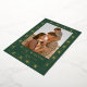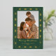 Share festive holiday greetings with this whimsical photo card featuring your vertical photo framed by a hand-drawn gold foil bow border on a rich green background. “Merry Christmas” is displayed below in whimsical handwritten gold foil lettering, with your family name and year shown underneath. The classic green and gold color palette creates a timeless holiday look. The back includes a second photo with space beneath for your message.
