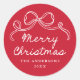Whimsical Hand-Drawn Bow Red Merry Christmas Classic Round Sticker