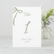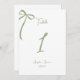 Celebrate your wedding in style with our whimsical hand drawn bow sage green wedding table number. This design features our original hand drawn bow illustration and hand written typography, a unique addition to your modern vintage inspired wedding or special events. All details in the invitation are editable including text, illustration, background and text colour.