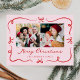Send sweet holiday greetings with this whimsical Christmas photo postcard featuring two square photos framed by hand-drawn red bows and ribbon. A blush pink background adds a soft, festive touch, while “Merry Christmas” appears in lively red script above your family name in classic serif lettering. On the back, include your return address and personalised holiday message. A charming postcard style that brings warmth and cheer to your Christmas mail.