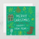 Send joy this season with a whimsical Christmas card featuring hand-drawn scribbles of mistletoe, trees, baubles, stars, and snowflakes. A playful yet heartfelt way to connect with loved ones and share festive cheer that feels personal and unique. Set on a green background.