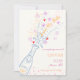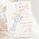 This trendy hand drawn style illustrated save the date invitation card features a scribble champagne bottle popping flowers and confetti. The whimsical and quirky design includes handwritten font and celebration doodles. Pastel colours with dusty blue tones for a fun and modern wedding stationary collection.