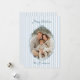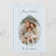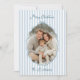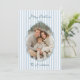 Send warm holiday cheer with this elegant striped Christmas photo card. Featuring a soft blue and white striped background, this design beautifully frames your family photo with a festive dark blue scalloped border and bow accent. The cheerful “Merry Christmas” greeting appears at the top in a playful script, while your family name is highlighted at the bottom for a personalised touch.