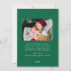 Celebrate the season with this Christmas card featuring a hand-drawn green bow and ribbon frame on a white background. The greeting “Merry Christmas” is written in festive handwritten green script, with your family name and year displayed below. The reverse side features space for another photo and your personalised holiday message, creating a fresh and festive design perfect for sending warm wishes to family and friends.