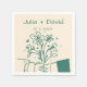 Whimsical Hand Drawn Green Floral Wedding Napkin