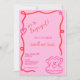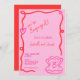 This trendy hand drawn style illustrated engagement invitation features a squiggle wavy border and a scribble oyster shell carrying an engagement ring. The whimsical and quirky design includes handwritten font styles. Colourful pink and red look for a classic yet modern wedding stationary.