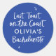 Whimsical modern fun hand drawn toast toast on the coast royal blue bachelorette weekend favour sticker.