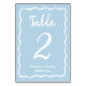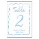 Whimsical Hand Drawn Wavy Light Blue White Table Number