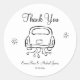 This classic round wedding sticker features a charming retro car illustration, symbolising the joyful journey of newlyweds. Perfect for sealing envelopes, decorating wedding favours, or adding a vintage-inspired detail to your stationery suite, this timeless design adds a touch of romance and nostalgia to your celebration.