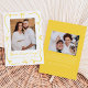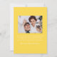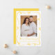 Share your joyful news with this cheerful pregnancy announcement featuring your vertical photo on the front, framed by hand-drawn yellow ribbons and bows on a white background. A handwritten yellow “We’re Expecting!” script pairs with your baby’s due date and names underneath. The back includes space for a horizontal photo and custom message, making it a bright, gender-neutral way to announce your pregnancy.
