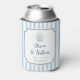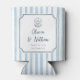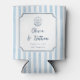 Whimsical Handdrawn Retro Blue Stripes Wedding Can Cooler