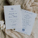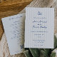 Whimsical handwritten French Blue, wedding invitation. Template features, hand drawn wedding rings doodle, light blue stripe background, and details template on back.