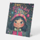 Whimsical Happy Birthday Sister Illustration Pedestal Sign