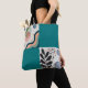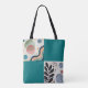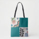 The "Whimsical Harmony Tote" tells a tale of artistry, individuality, and balance. Designed with a patchwork of eclectic patterns and a bold teal background, this bag is more than just an accessory—it’s a canvas of creative expression.