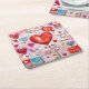 Whimsical Hearts and Love Letters Pattern Square Paper Coaster