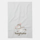 Adorable holiday kitchen towel features hand drawn whimsical ice skating snowman on grey background