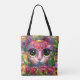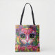 Whimsical Impressionistic Big Eyed Cat in Flowers Tote Bag