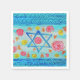 Decorate your home with Jewish Joy! Brighten up your home with this adorable set of paper napkins, featuring a whimsical, colourful Israeli flag with swirls, roses and hearts.