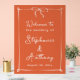 A stylish acrylic wedding sign featuring a warm Italian sunset background and a delicate white frame with knotted corners and an elegant bow. A perfect statement piece for modern romantic ceremonies and summer celebrations.