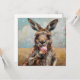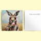 Spread some summer cheer with this charming and artistic "Kangaroo Eating Ice Cream" holiday card. The front showcases a high-fidelity, impressionist-style oil painting with rich, visible brushstrokes, depicting a kangaroo holding a pink ice cream cone against a soft, sun-drenched outback sky. This square-format card is fully customisable; while the vibrant artwork makes a bold statement on the front, the interior is pre-formatted with a clean "Happy summer holidays!" message that you can easily edit or replace with your own personalised note. It is a perfect choice for those looking to send a unique, artisanal greeting that combines wildlife character with a playful summer vibe.