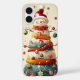 Celebrate the festive season with this playful phone case featuring a snowman built in the shape of a tiered Christmas tree, made up of colourful knit layers in red, green, yellow, and blue. Each layer is decorated with vibrant Christmas ornaments, stars, and gifts, while the snowman at the top wears a red knitted hat with a cheerful smile. The light background with snowflakes enhances the whimsical, cosy feel, making this case perfect for spreading Christmas joy and protecting your phone during the holidays.