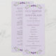 Charming folk-style floral sprigs in soft lavender, plum, and green frame this whimsical flat ceremony program on a pale lavender background. Your names, date, and full ceremony order are presented in clean modern typography with a playful dot accent divider. The back features your wedding party and a thank you. Fully customisable on both sides.