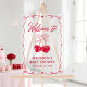 This acrylic baby shower welcome sign features “Welcome to” displayed in a handwritten red script, paired with coordinating red illustrations on a clear acrylic background. Framed by a hand-drawn ribbon border with heart accents, the design offers a clean and polished look that complements sweetheart and Valentine-themed celebrations. The sign can be personalized with the mother-to-be’s name and baby shower date shown below the artwork. Sleek and stylish, this acrylic welcome sign is perfect for greeting guests at the entrance to a Valentine or sweetheart-themed baby shower.