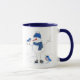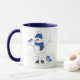 This is an original mixed media painting of a whimsical long-legged snowman with two bluebirds.