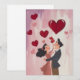 A charming, animated-style illustration of a couple lost in a moment of joy and affection, surrounded by vibrant red hearts floating against a soft pink background. The couple, dressed in vintage attire, gaze at each other with expressions of love and happiness, capturing the whimsical essence of romance.