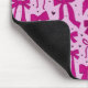 Coquette and whimsical mousepad featuring hand drawn illustration of magenta bows and heart pattern.